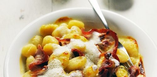 Faire une bolognaise avec des légumes coupés, du concentré de tomates et du vin rouge.